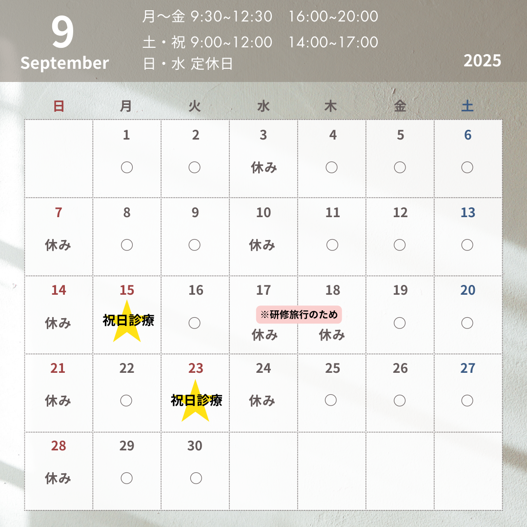 【2025年9月 診療日のお知らせ】